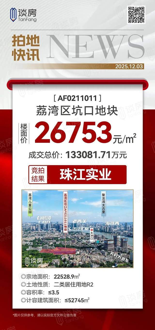 珠实玻璃厂项目,当时地块成交总额约13.3亿,折合楼面价约26753元/㎡。